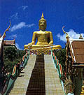 On the neighboring Ko Fan, connected to Samui by a causeway, is the temple of Wat Hin Ngu. Here there is a largely statue of the seated Buddha, imposingly sited on the hillock and dominating the skyline, looking especially awe-inspiring at sunset. Attached to the temple a meditation center which offers tuition to Thais and foreigners. Na Tian Butterfly Park